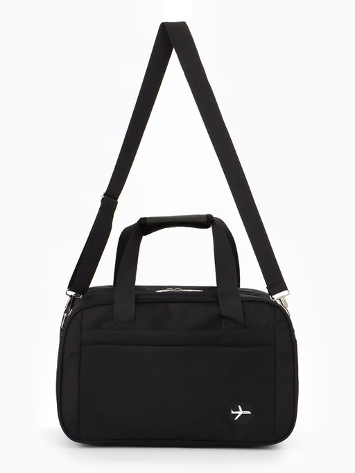 Сумка дорожная, однотонная, наружный карман, регулирующийся ремень, 39×20×25 см, чёрная