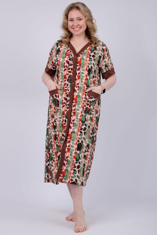 Халат домашний на пуговицах - это идеальный выбор для комфортного и стильного проведения времени дома. Созданный из 100% хлопка, этот халат дает не только мягкость и приятную на ощупь фактуру, но и отличную дышащую способность, обеспечивая максимальное удобство в любое время года. Халат оснащен накладными карманами, что делает его практичным выбором для хранения мелочей в доме. Короткие рукава и отсутствие утеплителя делают его идеальным для теплого климата или использования внутри дома. Вид застежки на пуговицы обеспечивает легкость надевания и снятия, а тип ростовки для высоких позволяет халату идеально сидеть на любой фигуре. Этот халат является отличным выбором для тех, кто ценит комфорт и стиль в домашней одежде. Он подходит как для повседневного использования, так и для специальных случаев, например, в роддоме, где необходима удобная и практичная одежда.