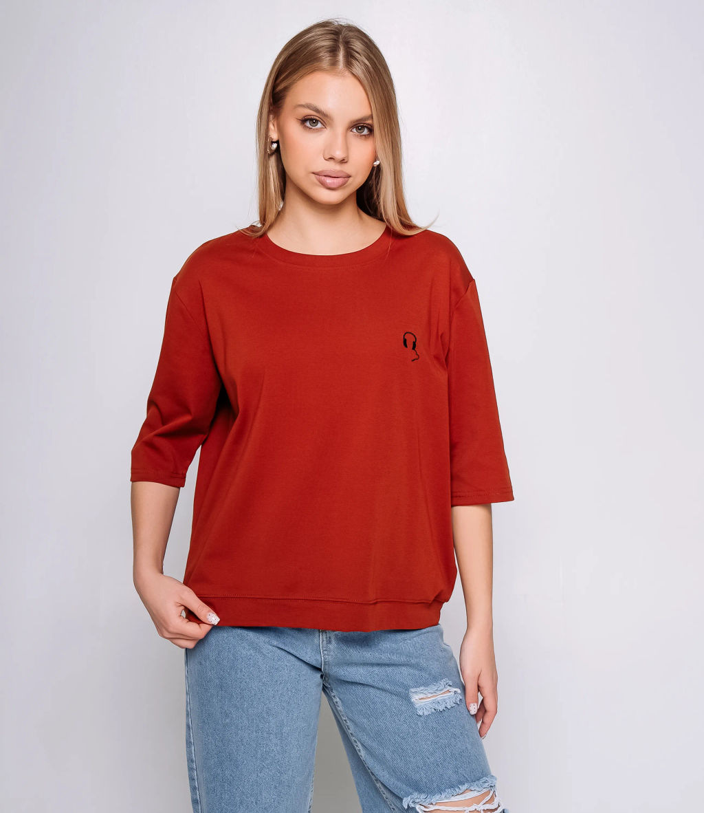 Футболка - это вещь, которая выделяет и подчеркивает уникальность каждой представительницы прекрасного пола. Футболка выполнена из мягкой, плотной трикотажной ткани с матовой поверхностью, имеет классический круглый вырез горловины с аккуратно пришитой резинкой-обтачкой, плечевые швы слегка опущены для свободной посадки, рукава средней длины до локтя с прямым срезом и обычной посадкой по руке, силуэт прямой и слегка удлинённый, свободно облегающий корпус без выраженной талии, по передней части на верхней левой части вшита небольшая тонкая нашивка. Изделие из 65% хлопок и 30% полиэстера, и 5% эластан сохранит свою первоначальную привлекательность даже после многих стирок. Вы будете его носить с большим удовольствием. Обратите внимание на цвет - он является насыщенным и полностью соответствует фотографии на сайте. Чтобы вы не сомневались в размере, мы предоставили на странице таблицу. Воспользовавшись ею, вы сможете сами сделать мерки и убедиться. Установленная нами цена является доступной и адекватной. Подарите себе удовольствие быть элегантной и неповторимой с нашей футболкой! -- Характеристики -- Цвет: терракотовый Пол: Женский Страна производитель: Китай Сезон: Всесезонный Материал: Хлопок, Эластан, Полиэстер