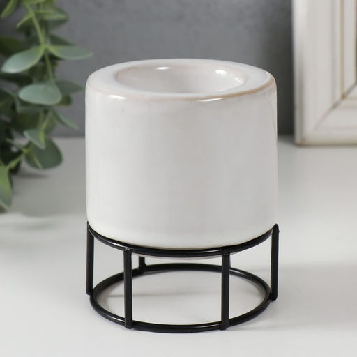 • Подсвечник на 1 свечу «Пенёк», керамика, металл, белый с чёрным, 7.7×7.7×8.9 см