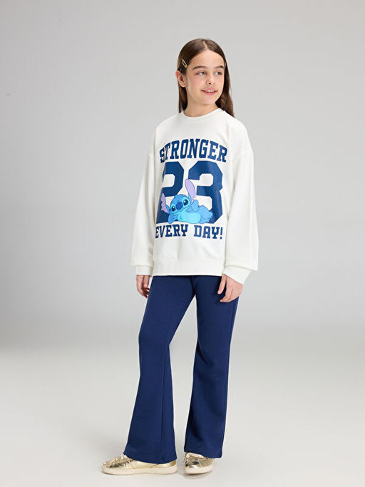 Bisiklet Yaka Stitch Bask?l? K?z ?ocuk Sweatshirt ve Tayt