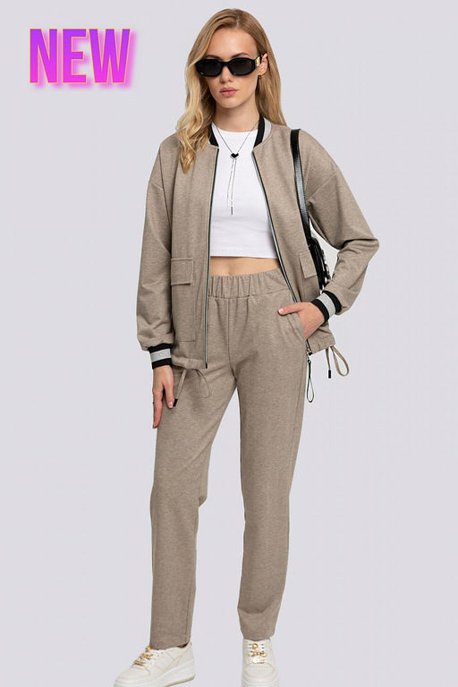 Брючный костюм из трикотажного полотна идеальный вариант для повседневной носки!!! Удобство, мягкость, актуальные расцветки мы постарались учесть все пожелания. Бомбер является лидером последних модных сезонов, может использоваться, как самостоятельная единица гардероба. Модель украшена деталями из трикотажного полотна. По линии низа бомбера кулиса, она позволяет носить его, подворачивая, или слегка подтянутым. Накладные карманы очень актуальны в новом сезоне. Низ брюк может отгибаться. Состав трикотажа: 75% хлопок, 20% полиэстер, 5% спандекс.­