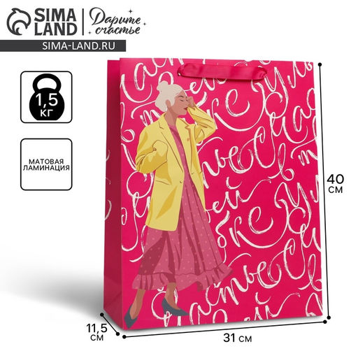 Для кого: Для женщины. Плотность, г/м²: 190. Допустимый вес вложения, г: 1500. Тематика: Женская. Рисунок: Да. Символ года: Нет. Тематика праздника: 8 Марта. Адресат: Без адресата. Отделка пакета: Ламинация. Вид ручки: Ручка-лента. Форма пакета: Вертикальный. Особенности: Без особенностей. Бесплатная доставка: Да. Наша разработка: Да. Размеры товара: 31/9/40.