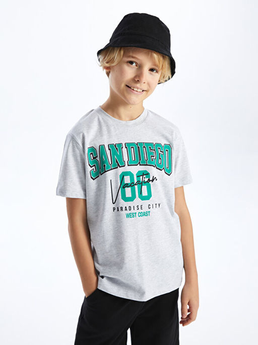 Bisiklet Yaka Bask?l? K?sa Kollu Erkek ?ocuk Ti??rt