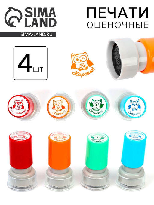• Оценочные печати "Совушка" набор 4 шт