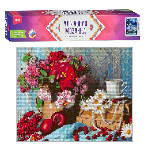 • Алмазная мозаика 40*50 см (полное заполнение) "Натюрморт с цветами и яблоками"