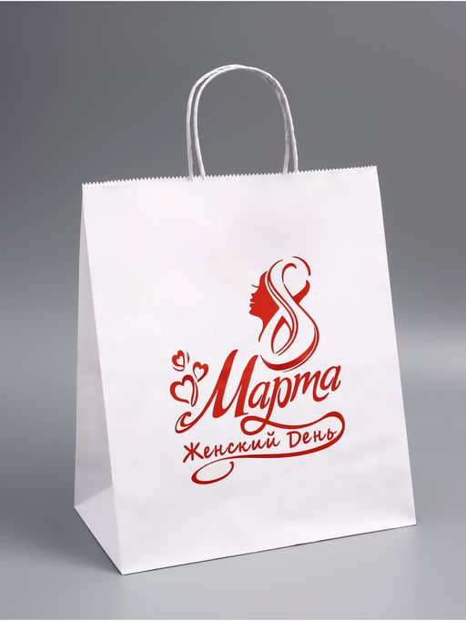 Подарочный пакет к 8 Марта это элегантная и стильная упаковка, которая добавит праздничного настроения вашему подарку. Его тематический дизайн с надписями и цифрами создаёт атмосферу весеннего праздника, а крафтовая текстура в сочетании с белым цветом придаёт упаковке лёгкость и изысканность. Пакет станет идеальным решением для поздравления женщин с Международным женским днём.