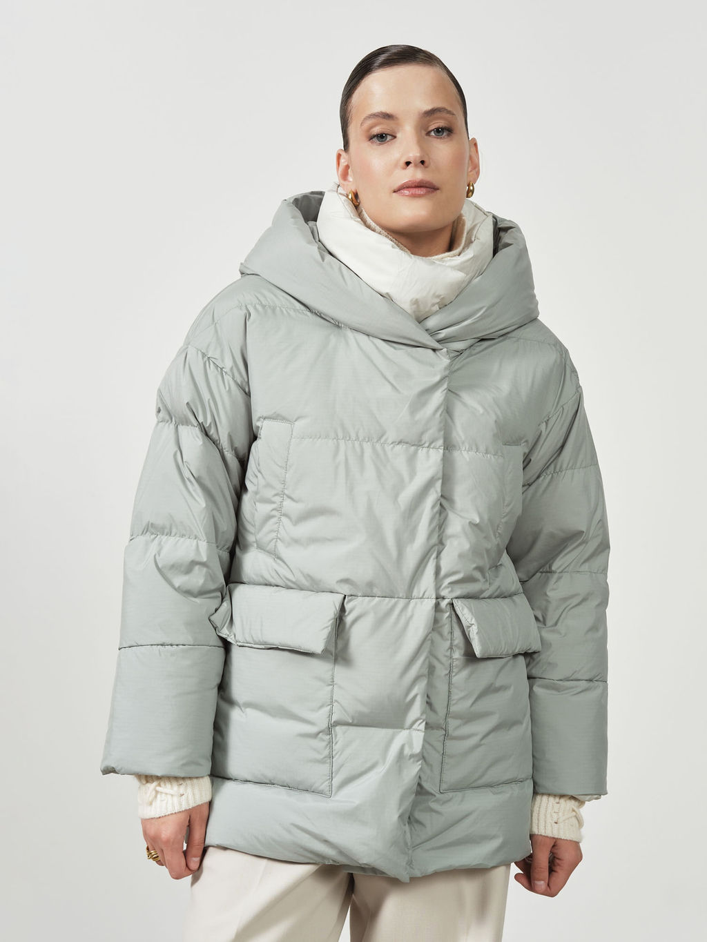 Женская куртка выполнена в актуальном мятном оттенке, который придаёт образу свежесть и лёгкость. Модель сочетает современный дизайн и функциональность, идеально подходя для холодного сезона.