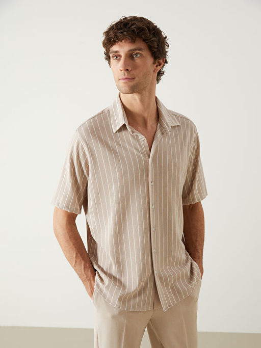 Regular Fit K?sa Kollu ?izgili Erkek G?mlek