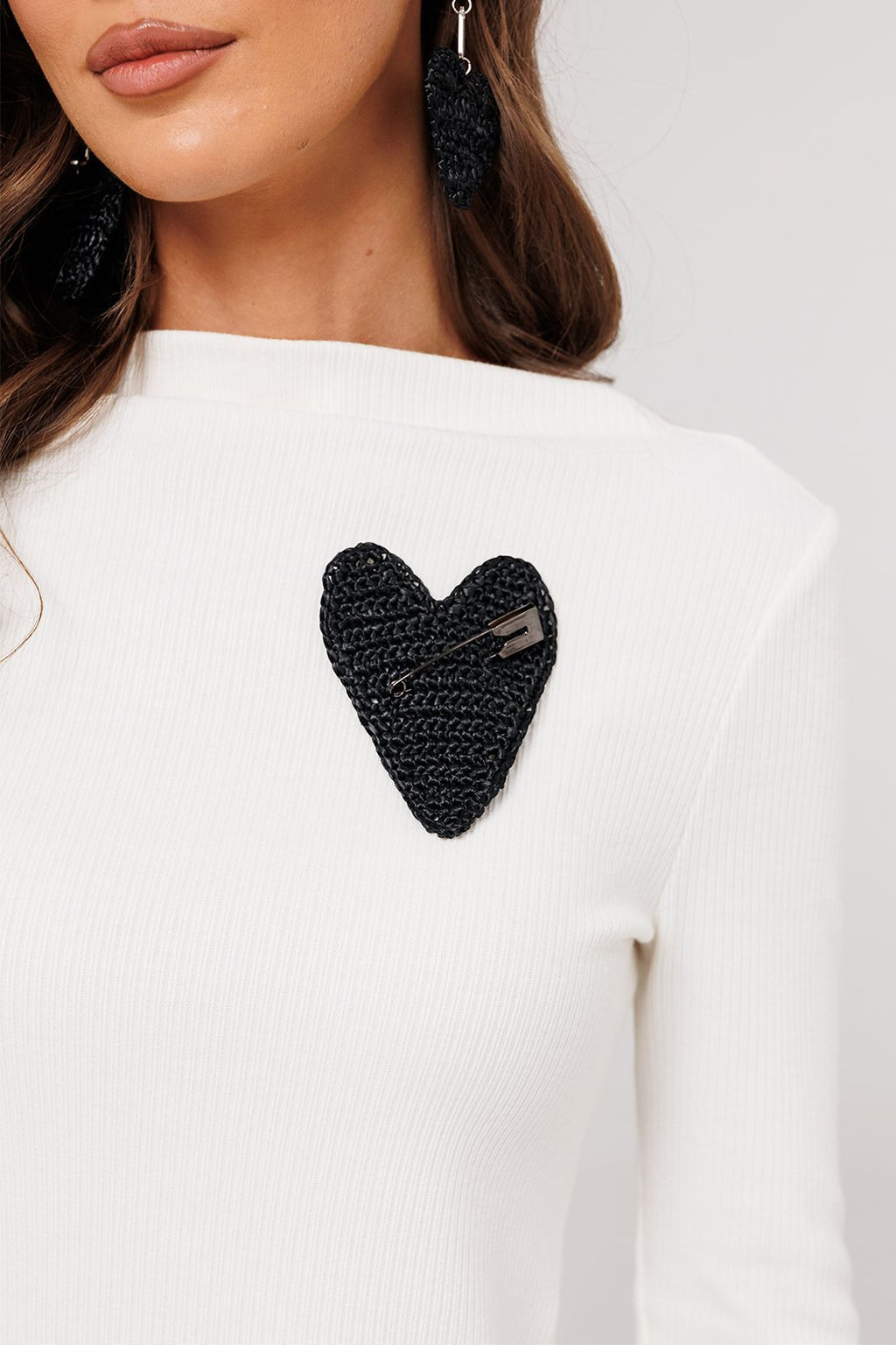 100% вискозаБрошь-сердце ручной работы. Вывязана из искусственной рафии. Застежка на большую декоративную булавку.