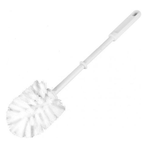 Изделие изготовлено из современного полимерного материала. Щетина из искусственных волокон достаточно жесткая. В комплект входит ёрш и подставка, которая позволяет сохранять чистоту и эстетичный вид.­