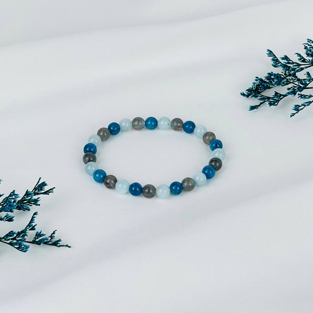 • Браслет из Апатита, Лабрадора и Аквамарина 16 см