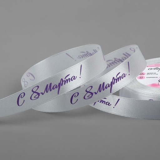 • Цена за 2 шт. Лента атласная «С 8 Марта», 15 мм, 23±1 м, белая, сиреневая №001