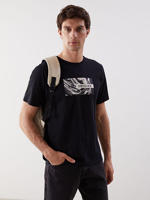 • Bisiklet Yaka K?sa Kollu Bask?l? Penye Erkek Ti??rt