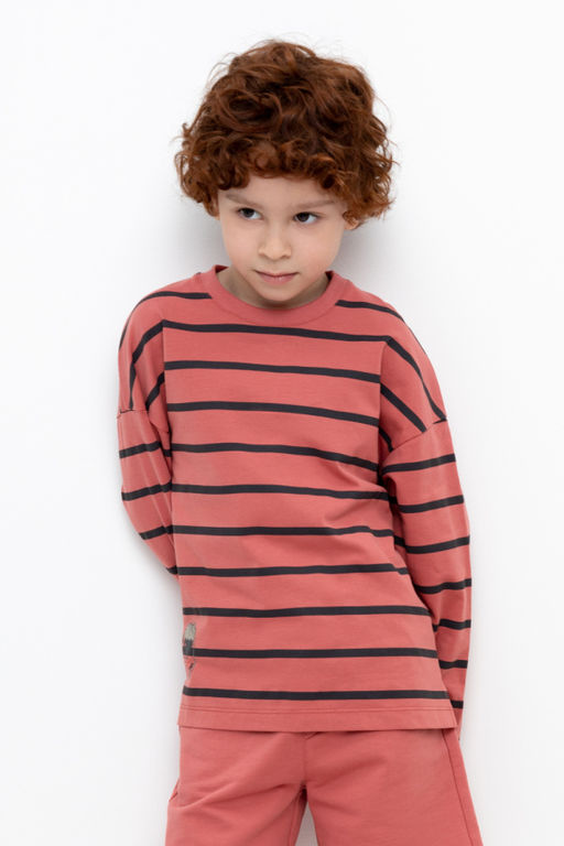 Легкий джемпер для мальчика из высококачественного трикотажного полотна. Обтачка горловины из эластичного трикотажа.Оригинальная набивка выполнена из стойких текстильных гипоаллергенных красителей.­