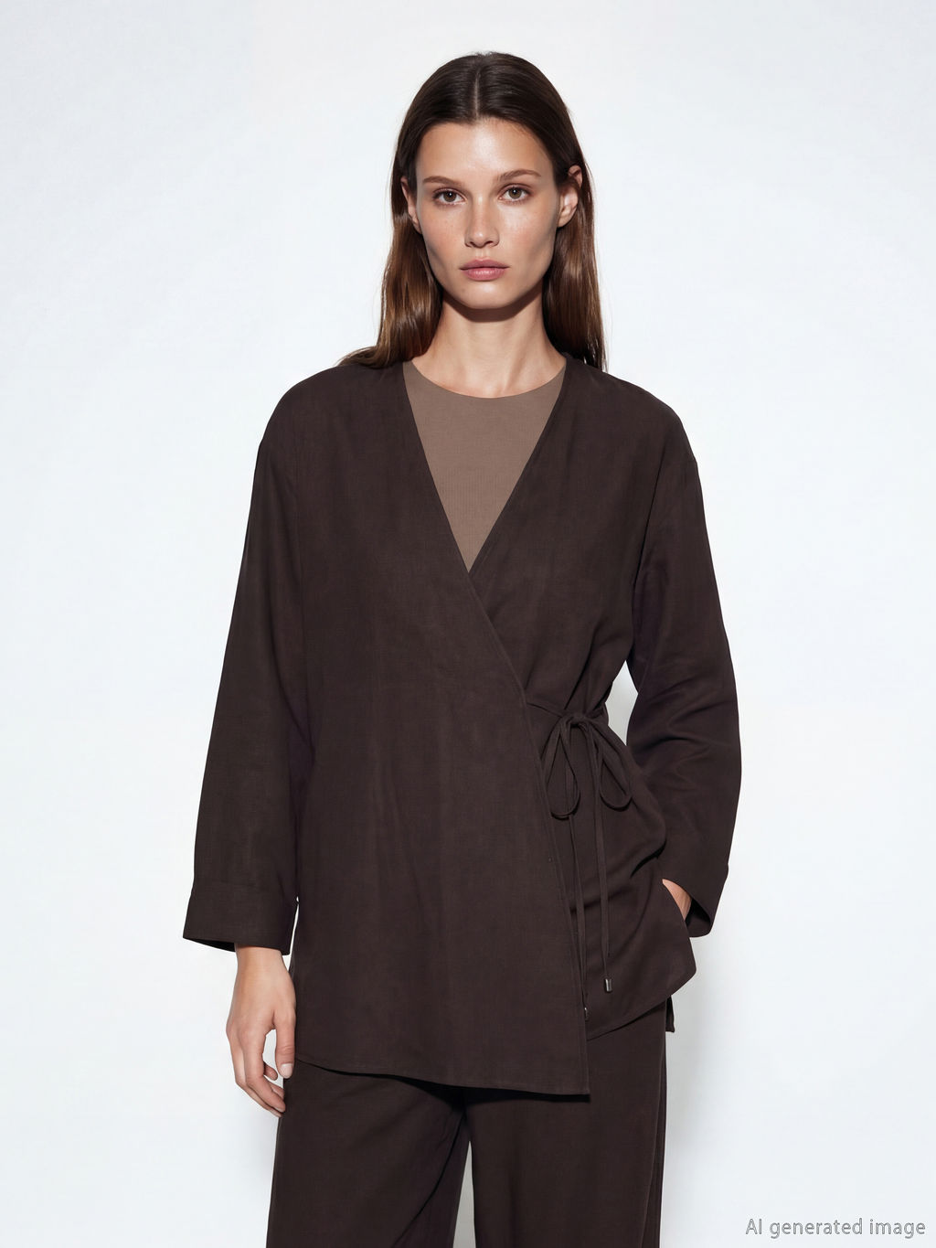Kruvaze Yaka Dokulu Modal Kar???ml? Kad?n Kimono