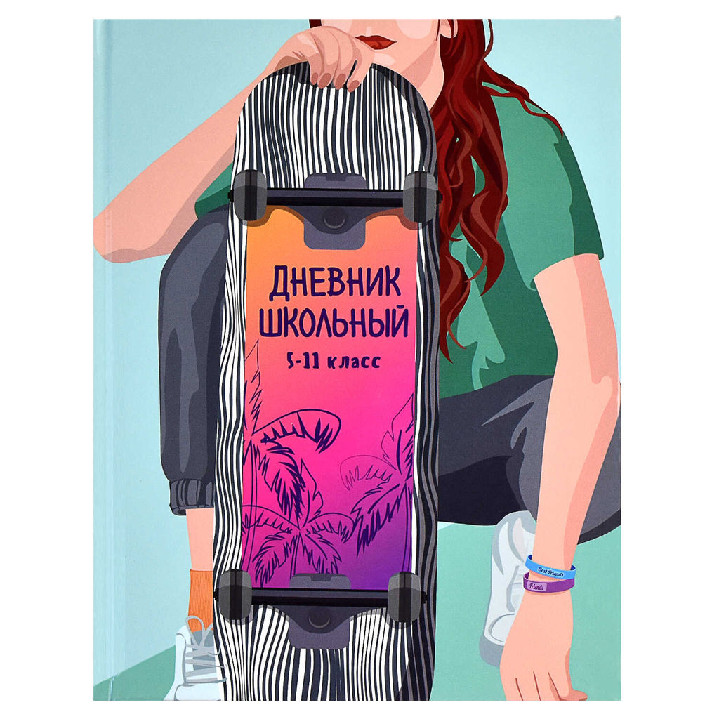 Дневник школьный 5-11 класс арт. 60088 ДЕВУШКА НА СКЕЙТЕ / твёрдый переплёт, А5+, 48 л., глянцевая л