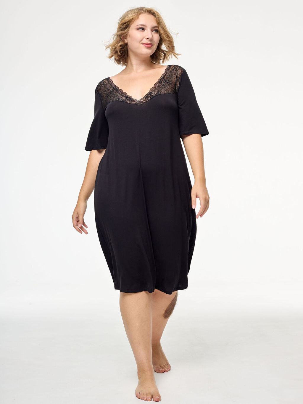 Наша мягкая сорочка из вискозы больше напоминает роскошное платье для дома. Она нежно обнимает тело и струится по фигуре. Красивое сочетание нежной вискозы и фактурного кружева делают образ богатым и изысканным. Мы постарались сделать наименьшее количество швов, чтобы даже самая нежная кожа чувствовала себя комфортно. Легкие расклешенные рукава спускаются по плечу и прикрывают подмышечную зону. Комфортный свободный крой у вискозной сорочки не сковывает движения. А практичный черный цвет стройнит и смотрится элегантно. Помимо этого, вискоза хорошо впитывает влагу, пропускает воздух и отличается своей износостойкостью, поэтому изделие прослужит очень долго. Размер товара на модели: XXL. Параметры модели: Обхват груди -97 см, Обхват под грудью -83 см, Обхват бедер -115 см, рост- 173см.