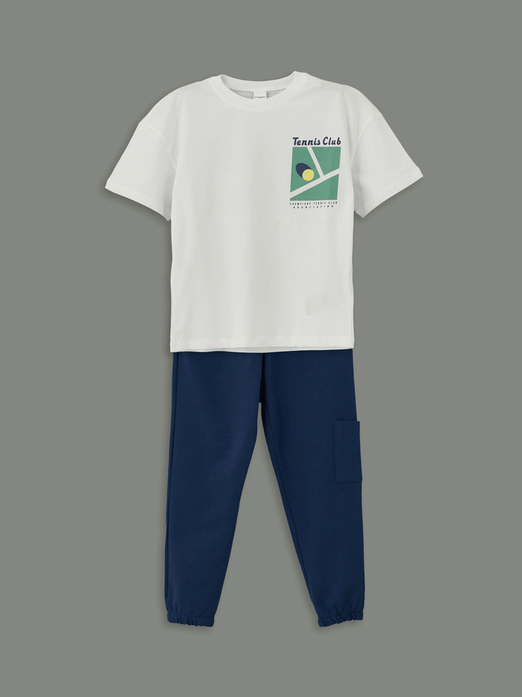 • Bisiklet Yaka Erkek ?ocuk Ti??rt ve E?ofman Alt 2li