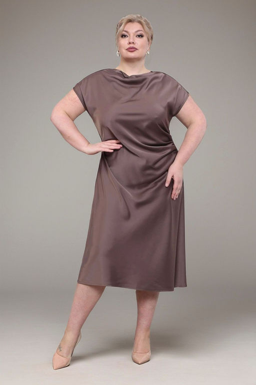 Платье шелковое с хомутом на вороте капучино