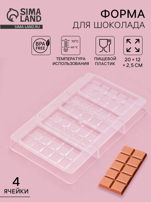 * Небольшая глубина ячеек (0,7 см) идеальна для тонких шоколадных плиток, заливного желе или декоративных конфет.