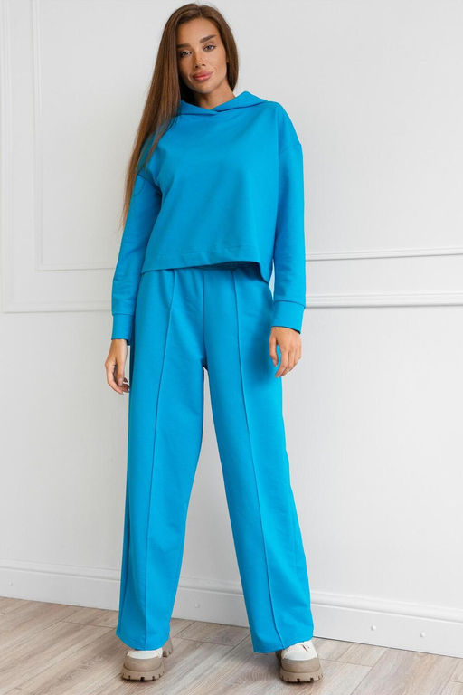 Костюм женский спортивный с капюшоном состоит из худи укороченного и брюк в форме труб. Стильный женский костюм от бренда Lika Dress, с укороченным свитшотом и широкими брюками поможет Вам быть в тренде этого сезона! Брюки палаццо подходят для любого типа фигуры, скрывают ее недостатки и подчеркивают достоинства. Костюм из мягкой кофты c капюшоном и прямыми брюками, прекрасно подойдет под лаконичный офисный стиль, для вечерних и повседневных образов. Костюм из худи и штанов может быть женственным и легким, подойдет для женщин и девушек. Спортивный трикотажный костюм можно сочетать с кроссовками и кедами. Брюки с широкими штанинами из трикотажной ткани очень удобны в качестве повседневной одежды. Костюм двойка или женский спортивный костюм с капюшоном пошит из плотной ткани - футер 2-х нитка.