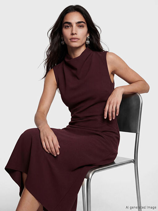 • Dik Yaka Krep Elbise