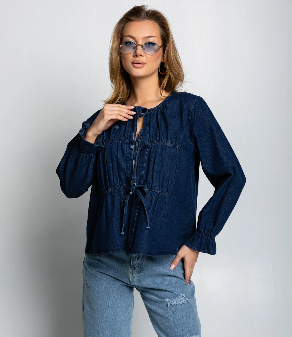 Блуза это одежда, которая подчёркивает привлекательность каждой женщины. блуза свободного кроя с удлинёнными рукавами и присборенными манжетами. Округлый вырез дополнен декоративной завязкой, регулирующей глубину выреза. Горизонтальные присборки по всей длине создают объём и подчёркивают силуэт. Завязка спереди позволяет скорректировать посадку. Модель в стиле кэжуал с элементами бохо, комфортна в носке, хорошо сочетается с джинсами. Для пошива использован материал 100% хлопок. Блуза легко комбинируется с джинсами и другими элементами гардероба, подходя для повседневной носки. Ткань проста в уходе, сохраняет первоначальный вид и насыщенность цвета даже после многократных стирок, что делает изделие практичным и привлекательным для покупательниц. Цвета соответствуют фотографиям на сайте. На странице размещена таблица размеров; воспользовавшись ею, вы сможете самостоятельно снять мерки и убедиться в правильности выбора. Установленная оптовая цена адекватна; для оптовых клиентов действует гибкая система скидок и индивидуальные условия сотрудничества. Уточнить минимальный заказ и сроки поставки можно у менеджера. Предложите своим покупательницам лёгкую и стильную блузу, которая станет достойным пополнением ассортимента ваших магазинов. -- Характеристики -- Цвет: cиний Пол: Женский Страна производитель: Китай Сезон: Демисезон Материал: Хлопок