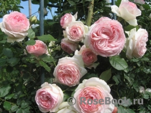 Этот сорт – сильнорослая плетистая роза с цветками в старинном стиле. Они крупные, густомахровые, шаровидные, состоят из более 40 лепестков. Основная окраска кремово-белая, с лавандово-розовым и карминовым налетом. Повторно цветет летом и осенью, аромат легкий. Достигает средней высоты для плетистой розы, подходит для стены или забора, где сильные ветвистые побеги можно подвязать горизонтально, или можно пустить его по высокой опоре, либо с опорами выращивать как куст. Листва крупная, ярко-зеленая, блестящая.