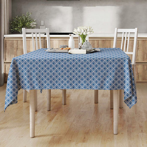 • Скатерть 120х145см "Синий орнамент", длина стола до 105см, на 4 персоны, рогожка 176г/м2, хлопок 100%, упаковка классическая 28х41см, "Домашняя мода" (Россия)