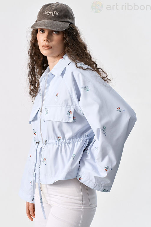 Куртка - ветровка прямого силуэта, изготовлена из плащевой ткани на вискозной подкладке.