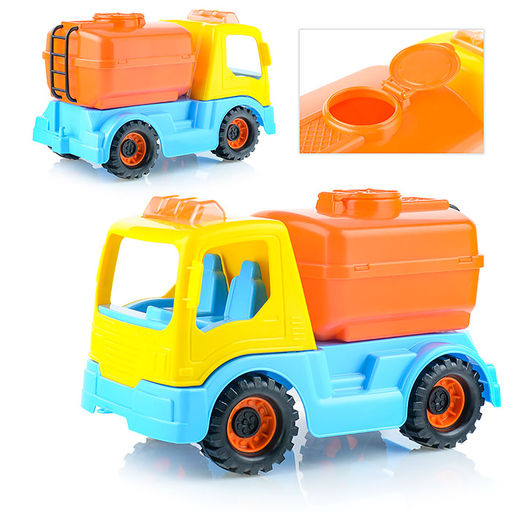 Автомобиль-цистерна "Батыр" – пластмассовая игрушка, которую можно использовать как на улице, так и в доме. Игрушечная машинка с кузовом в форме цистерны. Люк цистерны открывается. Машина оснащена 2 осями и имеет 2 пары колес.