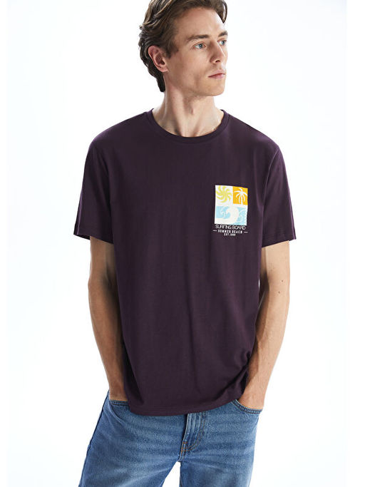 • Bisiklet Yaka K?sa Kollu Bask?l? Penye Erkek Ti??rt