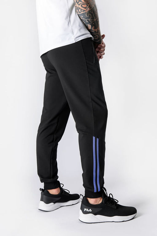 Контрастные лампасы по бокам ниже колена придают изделию динамичный спортивный акцент.