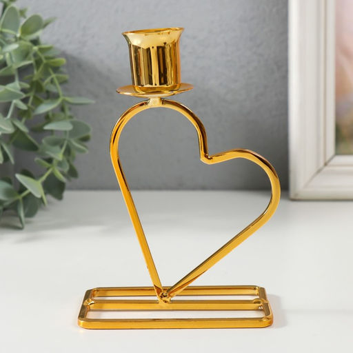 Подсвечник на 1 свечу «Сердце», металл, d=2.3 см, золото, 5.8×9.3×14 см