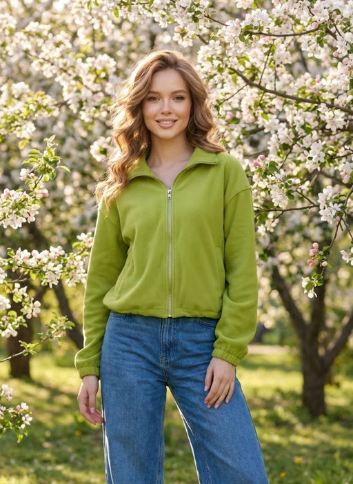 • K13389 Толстовка из флиса на молнии ЗЕЛЕНЫЙ