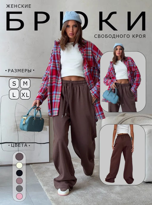 K13020 Штаны палаццо (хлопок) КОРИЧНЕВЫЙ