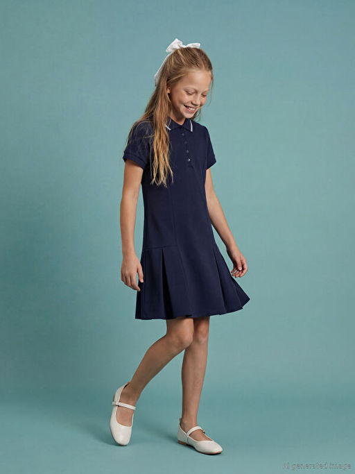 Pileli Polo Yaka K?z ?ocuk Elbise