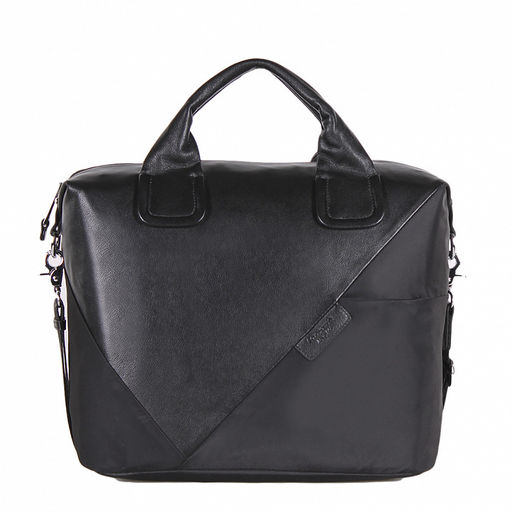 Удобная модель, выполнена из натуральной кожи и текстиля.  Дополнена серебристой фурнитурой. Данная модель закрывается на молнию, носится на плече или в руке. В комплекте имеется ремень-стропа  с регулировкой длинны и короткие ручки встроенные. Каркас полужесткий.