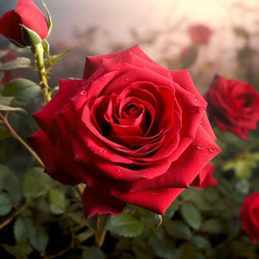 Чайно-гибридная. Роскошный классический пламенно-красный цветок с эффектными бархатными бутонами конусовидной формы. Цветок темно-красный, махровый (26-40 лепестков), крупный, 10-14см. Аромат слабый. Цветение повторное, в течение лета, двумя ярко выраженными волнами, в первую волну цветки в основном одиночные, во вторую - в кистях по 1-3шт. Куст слегка раскидистый, прямостоячий, высотой от 70 до 120см. Листья крупные, темно-зеленые матовые с бордовым оттенком. побеги слабо облиственны.