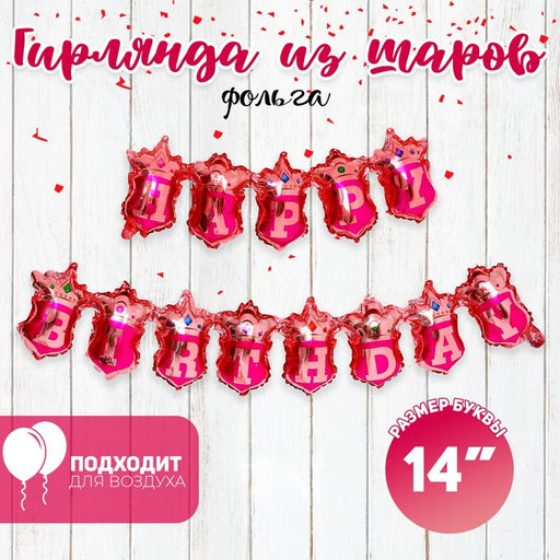 • Воздушные шары фольгированные 14", гирлянда «С днём рождения», розовая