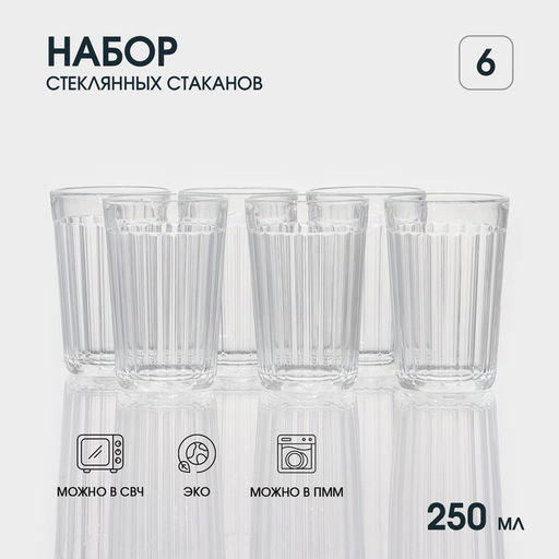 Набор стеклянных стаканов «Граненый», 6 шт., 250 мл