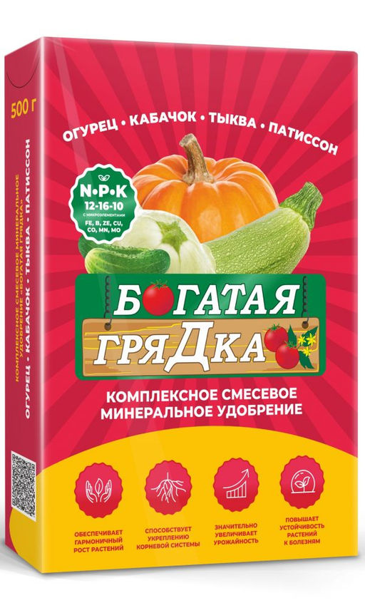 БОГАТАЯ ГРЯДКА для огурца, кабачка, тыквы и патиссона 500 г Комплексное удобрение