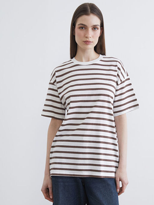 Bisiklet Yaka ?izgili Kad?n Ti??rt
