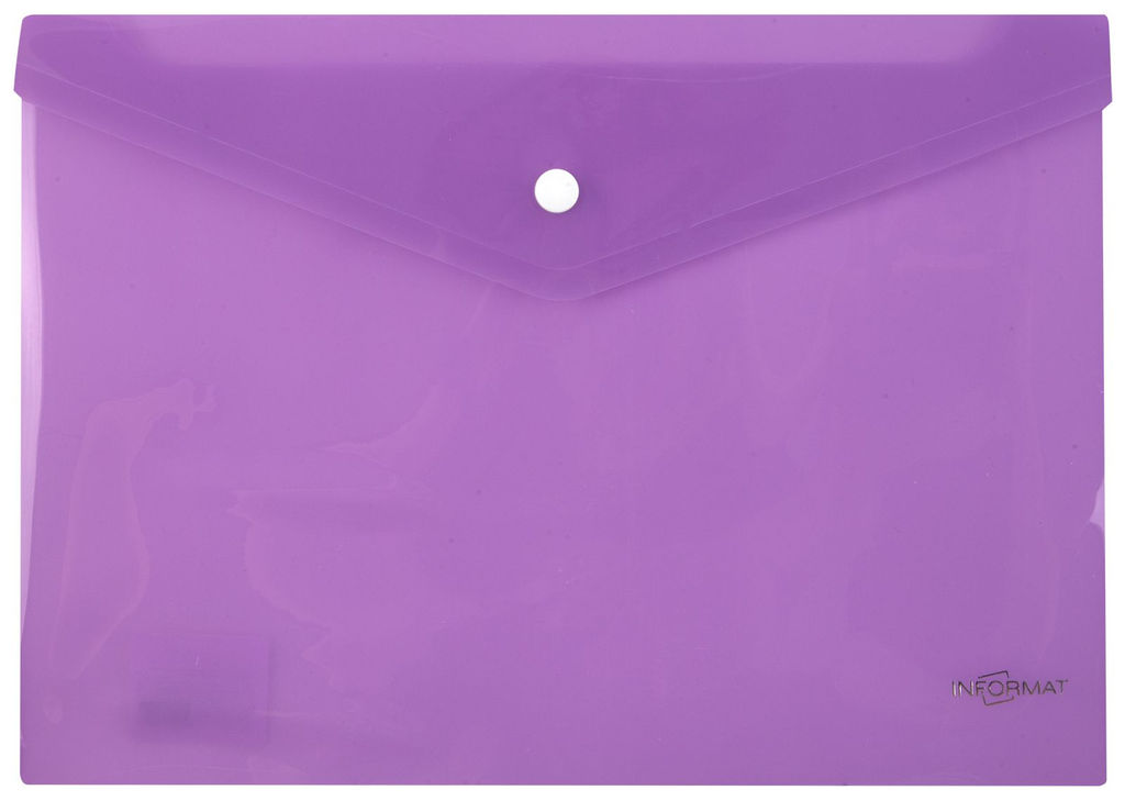 • Цена за 2 шт. Пластиковый конверт INFORMAT А4, на кнопке, прозрачный 180 мкм, фиолетовый