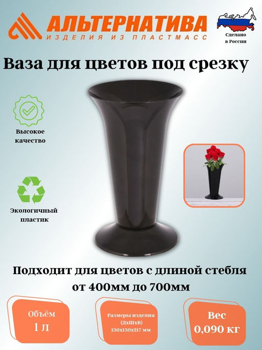 • Цена за 2 шт. Ваза д/цветов под срезку Д129мм,В217мм (черный) М7552