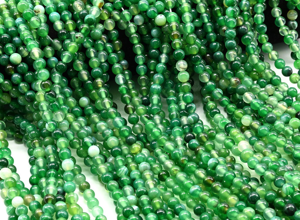 Бусины из агата тонированного шарик 6мм цв.зеленый, 38см, 63 бусины Радуга камня