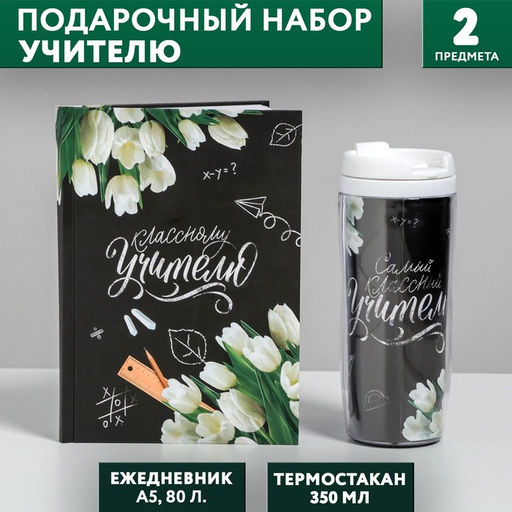 • Подарочный набор «Классному учителю»: ежедневник А5, 80 листов, термостакан 350 мл