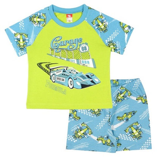 CAK 5439 комплект для мальчика (футболка, шорты), салатовый-синий