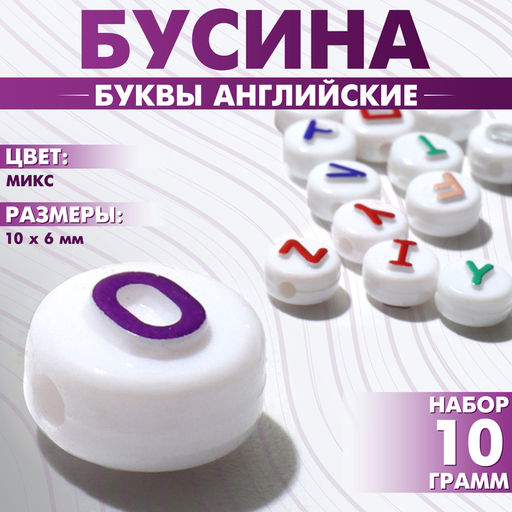 • Цена за 2 шт. Бусины для творчества из акрила «Английский алфавит», 10×6 мм, набор 10 г, блестящие, МИКС